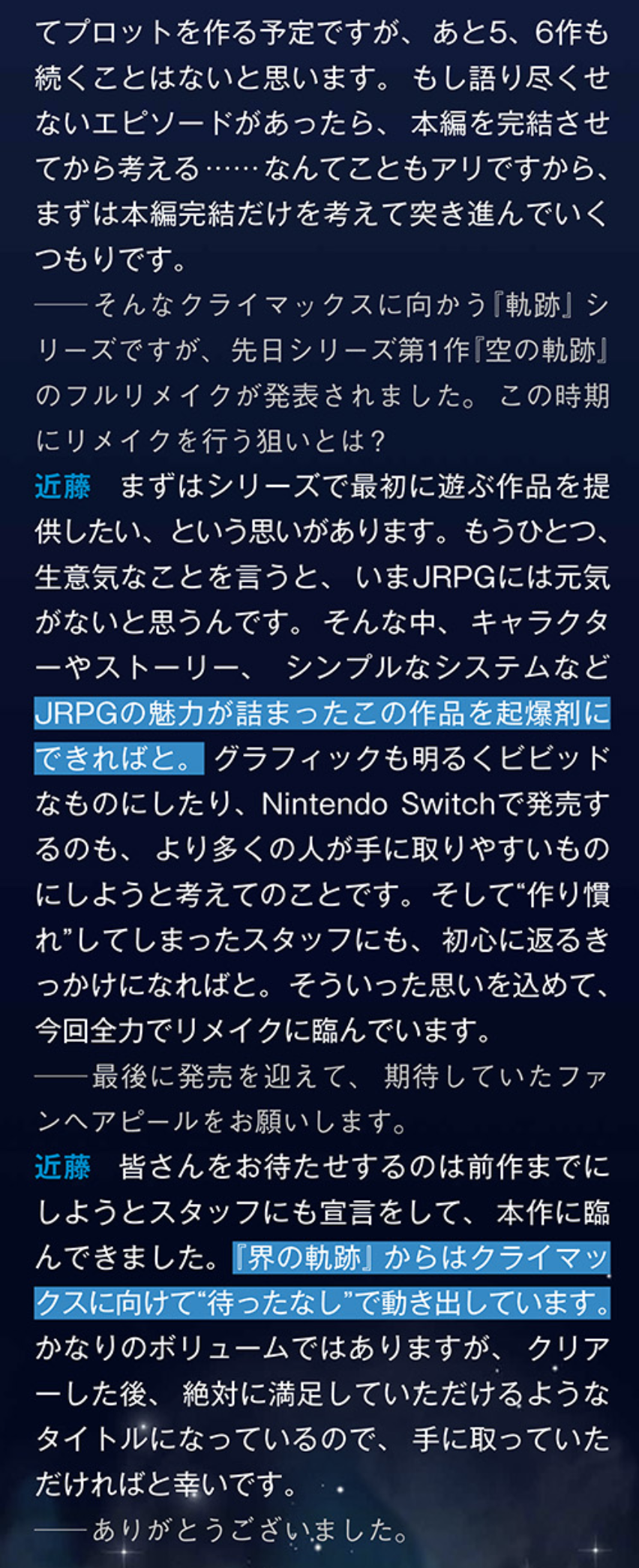 ファルコム社長「今JRPGには元気がない、軌跡シリーズを起爆剤にJRPGを盛り上げる」